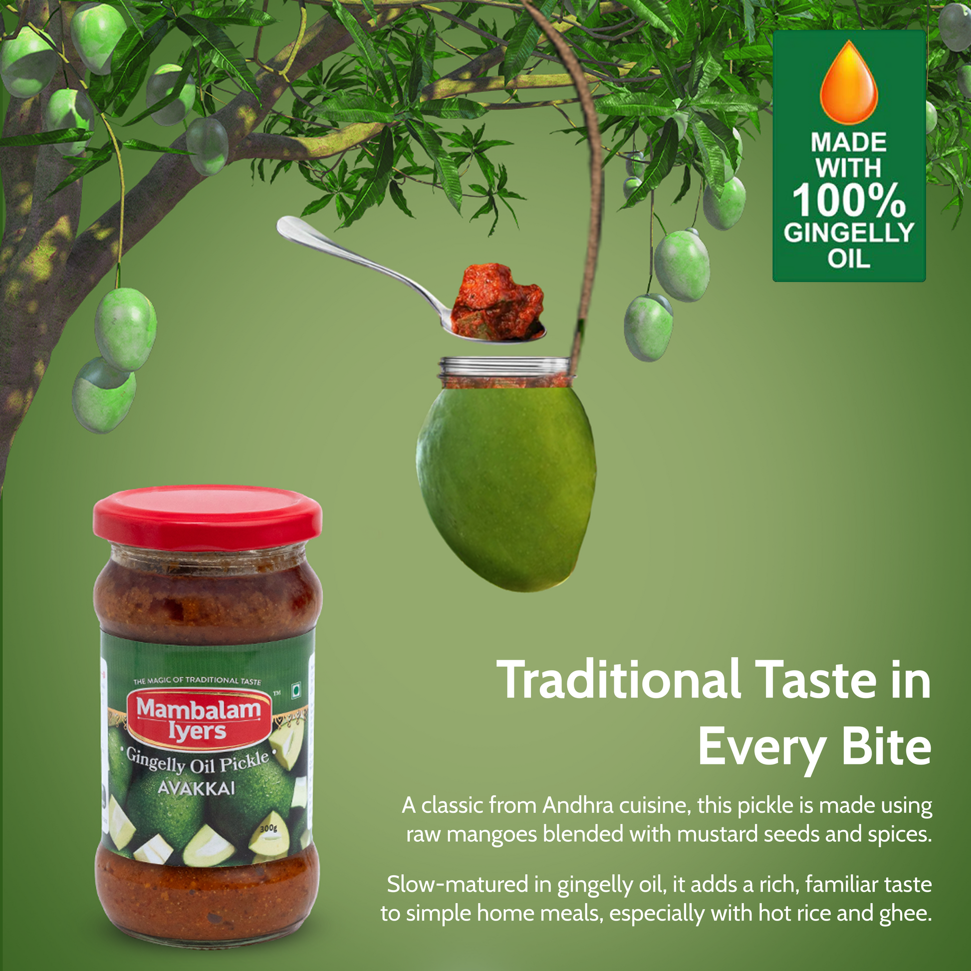 All our pickles are made using premium-quality ingredients and 100% gingelly oil.