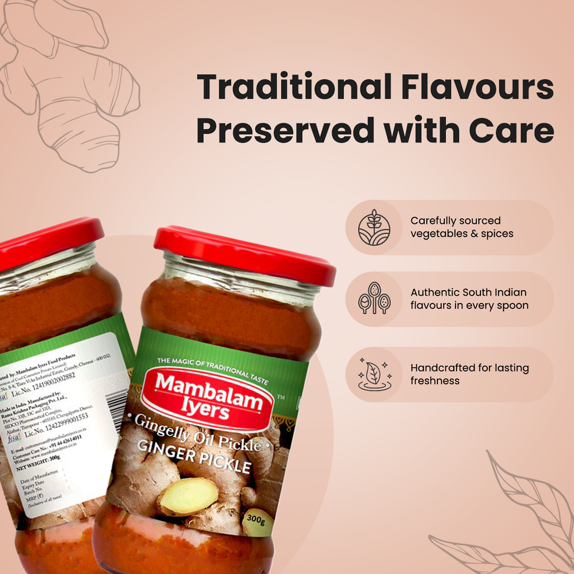 These pickles are made using premium-quality ingredients and 100% gingelly oil.