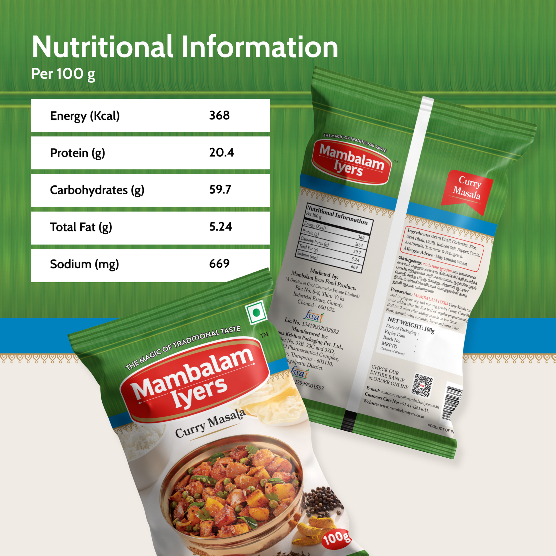 Elevate your South Indian dishes with Mambalam Iyers Curry Masala Powder. Crafted using traditional recipes and premium ingredients, this versatile spice blend is a must-have for any kitchen.