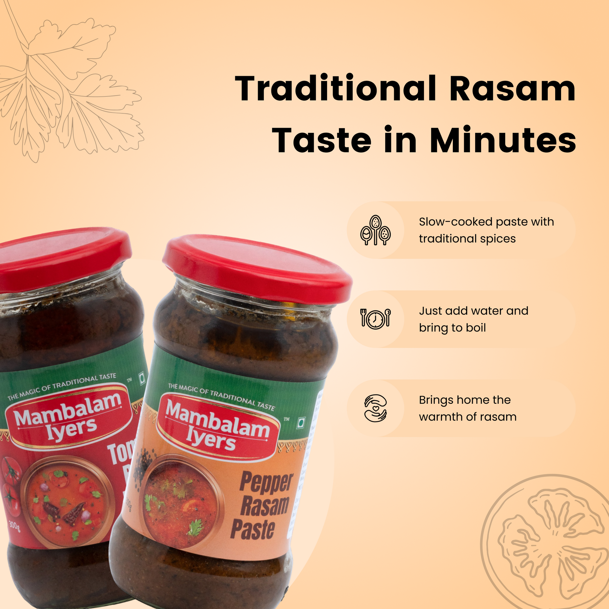 Enjoy the rich, authentic flavors of South India with our Tomato Rasam Paste & Pepper Rasam Paste combo. Whether you crave the tangy taste of tomatoes or the bold heat of pepper, this combo is perfect for a comforting, homemade rasam in minutes.
